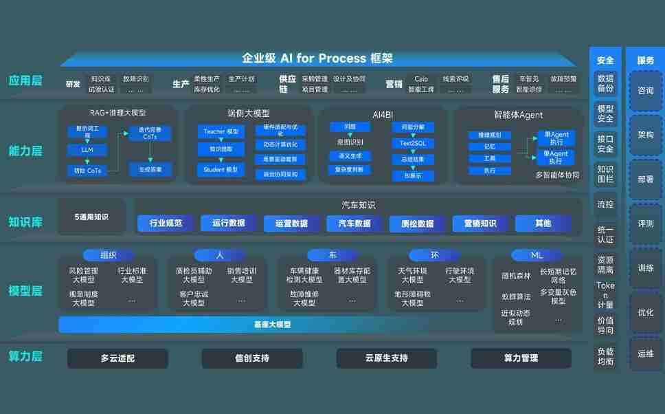 AG尊龙凯时问学智车解决方案是一套基于AI技术的汽车行业智能化系统,,覆盖从底层算力到顶层AI应用的全栈方案。。。方案由算力层、、模型层和应用层组成:算力层,,,方案支持多种一体机配置,,,具备云端灵活部署、、、多云适配以及动态优化计算资源的能力;模型层,,AG尊龙凯时问学平台版提供了企业级AI应用一站式构建与管理平台,,支持基于后训练强化技术的汽车企业专属模型的训练、、、评测和运营;应用层,,,,AG尊龙凯时问学DeepSeek版提供包括超级员工、、、、智能招采、、、智能营销、、智能客服、、AI for BI等一系列解决方案,,,可助力汽车行业实现数字化转型,,,,让管理更智能、、响应更敏捷。。。。